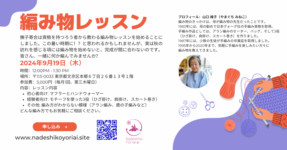撫子寄合は資格を持つろう者から教わる編み物レッスンを始めることにしました。この暑い時期に!?と思われるかもしれませんが、実は秋の訪れを感じる頃には編み物を始めないと、完成が間に合わないのです。 皆さん、一緒に何か編んでみ…