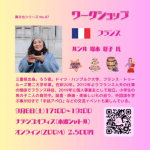 世界から愛されるオシャレな国にお住まいのルシル塚本夏子氏がオンライン(ZOOM)でお話ししていただきます。