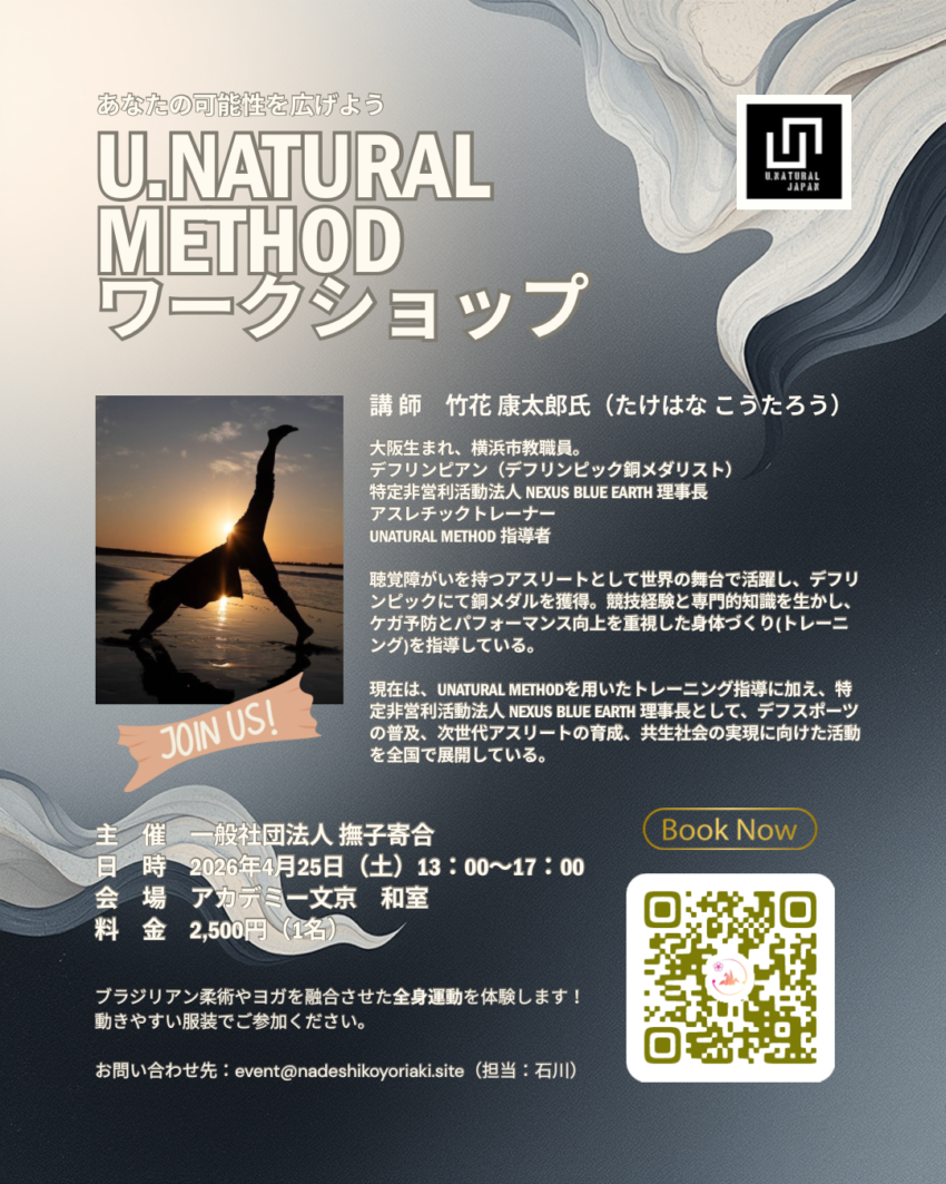 U.Natural Methodを体験しよう! Posted on 02/16/202602/16/2026 by meri U.Natural Methodは、ブラジリアン柔術とヨガの動きをベースに、長年の実践と研究を重ねて開発されたトレーニングメソッドです。 全身を使った多様な動きの組み合わせにより、「動く力」そのものを高めるように設計され… Read more